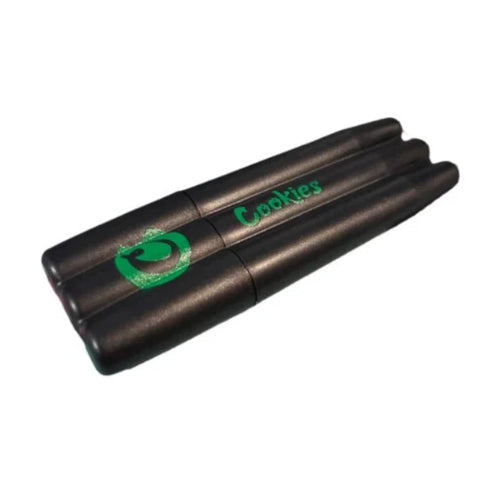 The Cookies green triple joint holder is a compact and durable plastic storage case designed to safely carry up to three king size slim cones. Finished in black with a bold green Cookies logo, this lightweight holder protects your cones from bending or damage, making it ideal for travel, daily use, or discreet storage on the go.